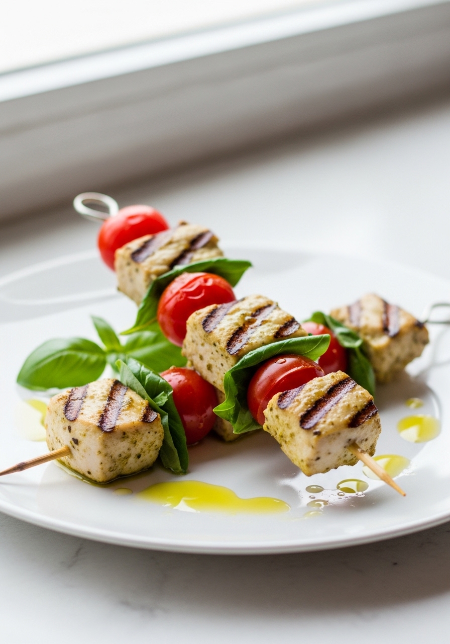 Savor the delightful flavors of Grilled Pesto Chicken and Tomato Kebabs, a simple and delicious dish featuring tender, boneless skinless chicken breast, juicy tomatoes, and a vibrant basil pesto. These kebabs are not only easy to prepare but also perfect for a summer barbecue or a quick weeknight meal.