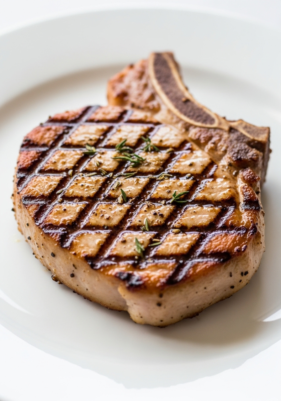 Tender Grilled Pork Chops begin their journey in a savory brine, enhancing their juiciness, followed by a generous coating of a zesty dry rub that elevates their flavor to new heights. Enjoy the ultimate pork chop experience!