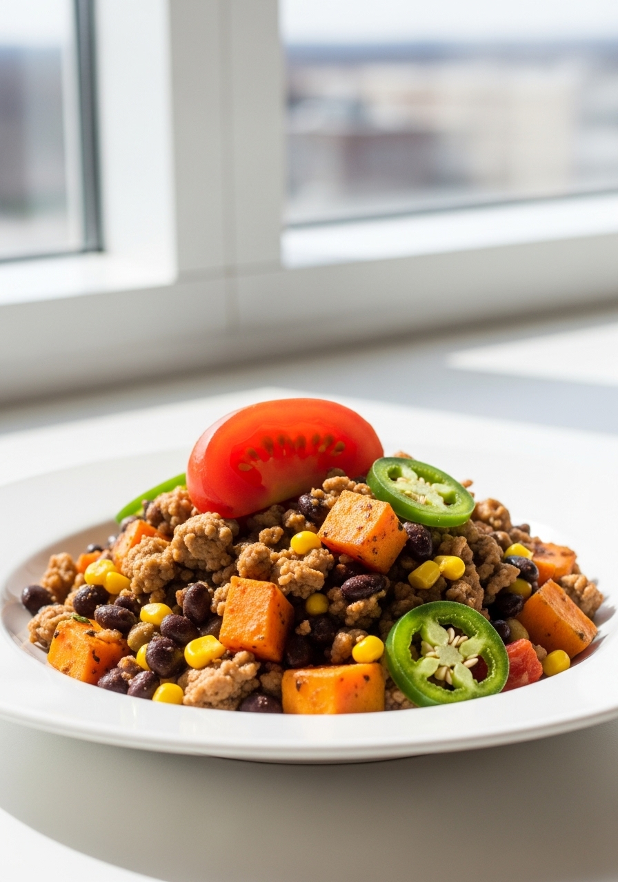 This simple and speedy Ground Turkey Skillet featuring sweet potatoes, black beans, corn, and tomatoes is an excellent choice for your meal prep routine. It's hearty, satisfying, and bursting with flavor!