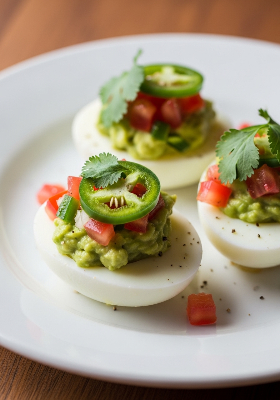 Generously fill each of the 12 egg halves with the guacamole mixture using a spoon.