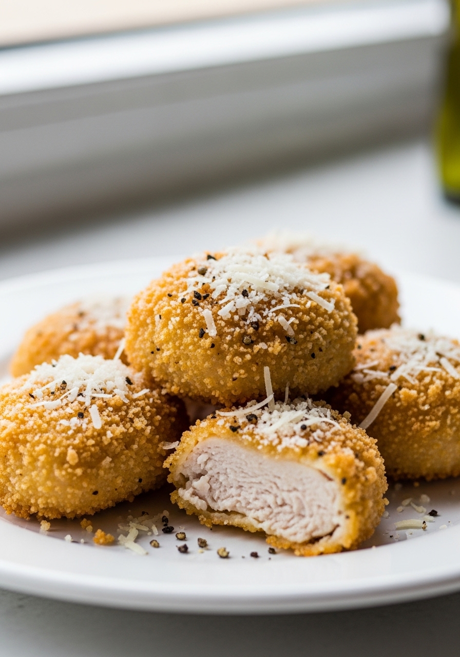 Tender pieces of chicken breast encrusted in a crispy layer of breadcrumbs and parmesan, then oven-baked to a delightful golden finish. This simple chicken dish is sure to be a hit with everyone at the dinner table!