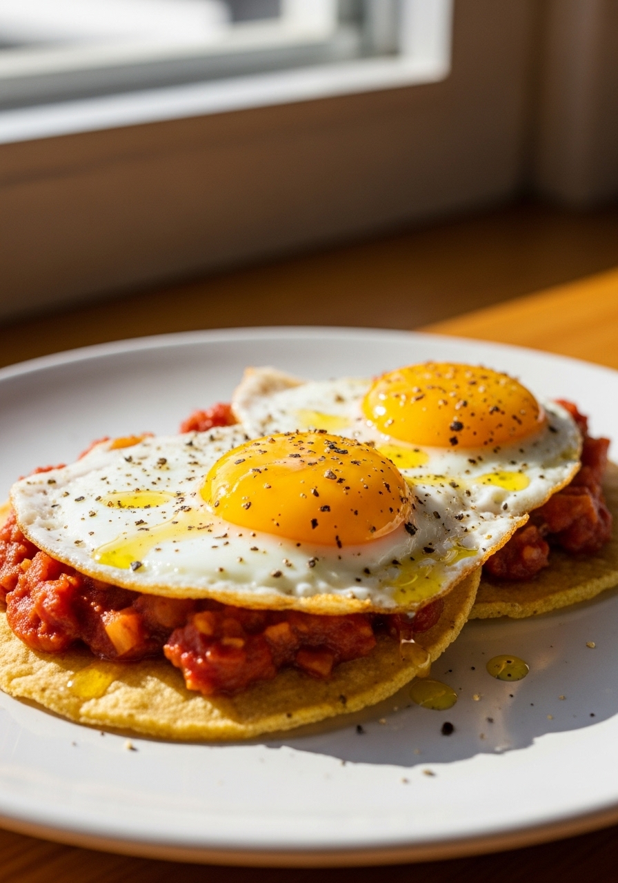 Huevos rancheros, also known as ranch-style eggs, are a classic morning dish commonly enjoyed on Mexican farms. This delightful breakfast consists of warm corn tortillas generously layered with fried eggs and vibrant salsa.