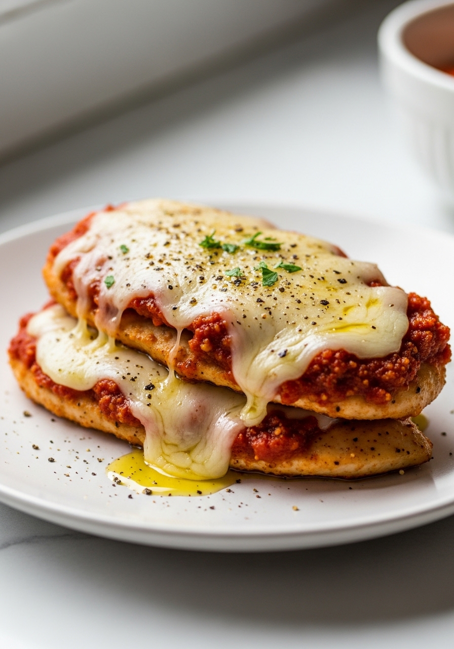 You can serve the dish at this stage, or for a more intense flavor and added crispiness, broil the cheese until it is golden and bubbling. To do this, preheat the broiler with the rack positioned about 4 inches from the heat source. Transfer the chicken and sauce to a greased small rimmed baking sheet, keeping the cheese on top as much as possible. Broil for 2 to 3 minutes or until the cheese has reached a nice brown color. If you wish, garnish with fresh basil before serving.