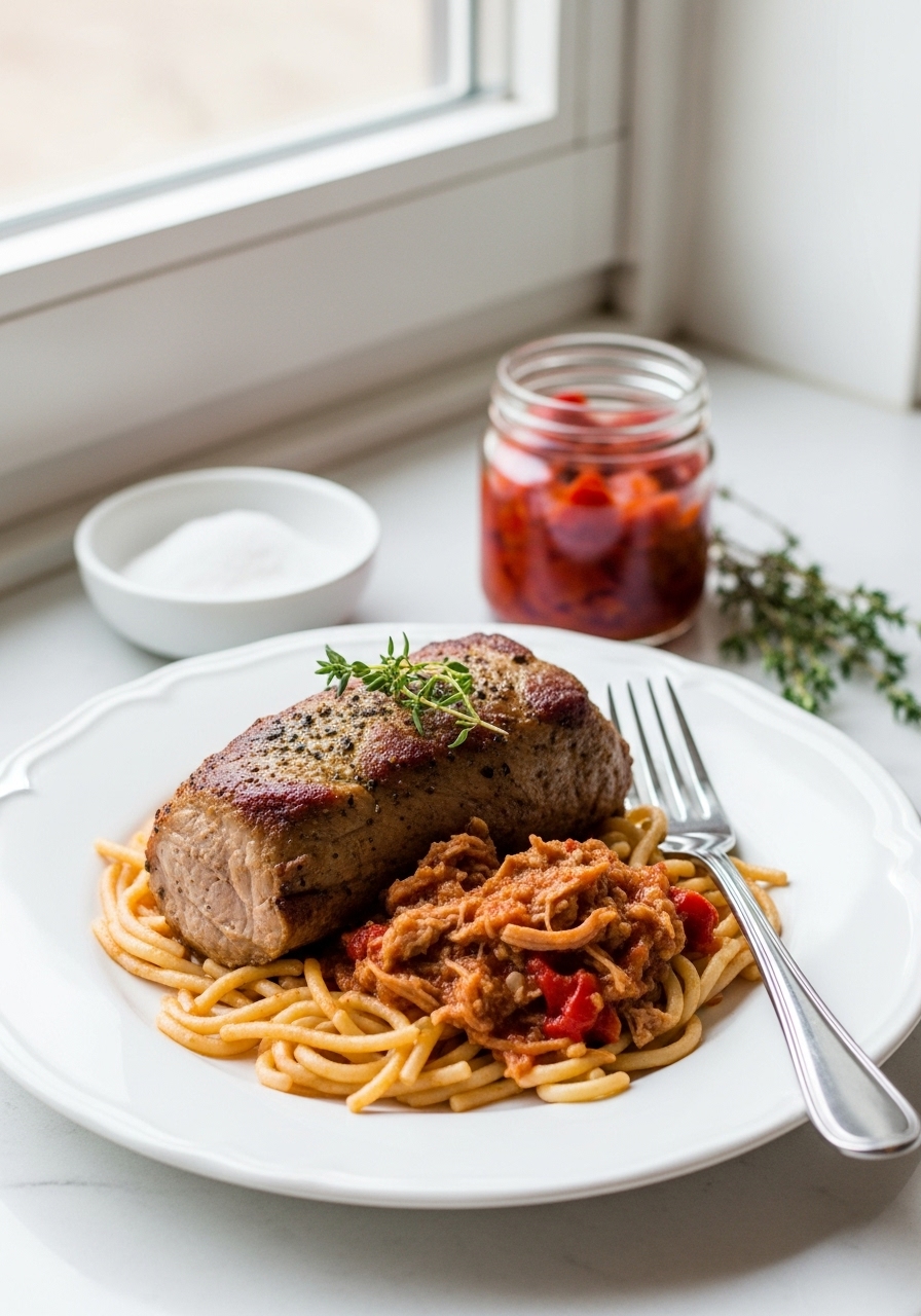 "Pulled pork goes beyond the confines of sandwiches; it shines in this robust sauce, making it an excellent choice for draping over pasta, spaghetti squash, or even spiralized noodles." Recipe title: "Italian Pulled Pork Ragu (Instant Pot, Slow Cooker, Stove)"