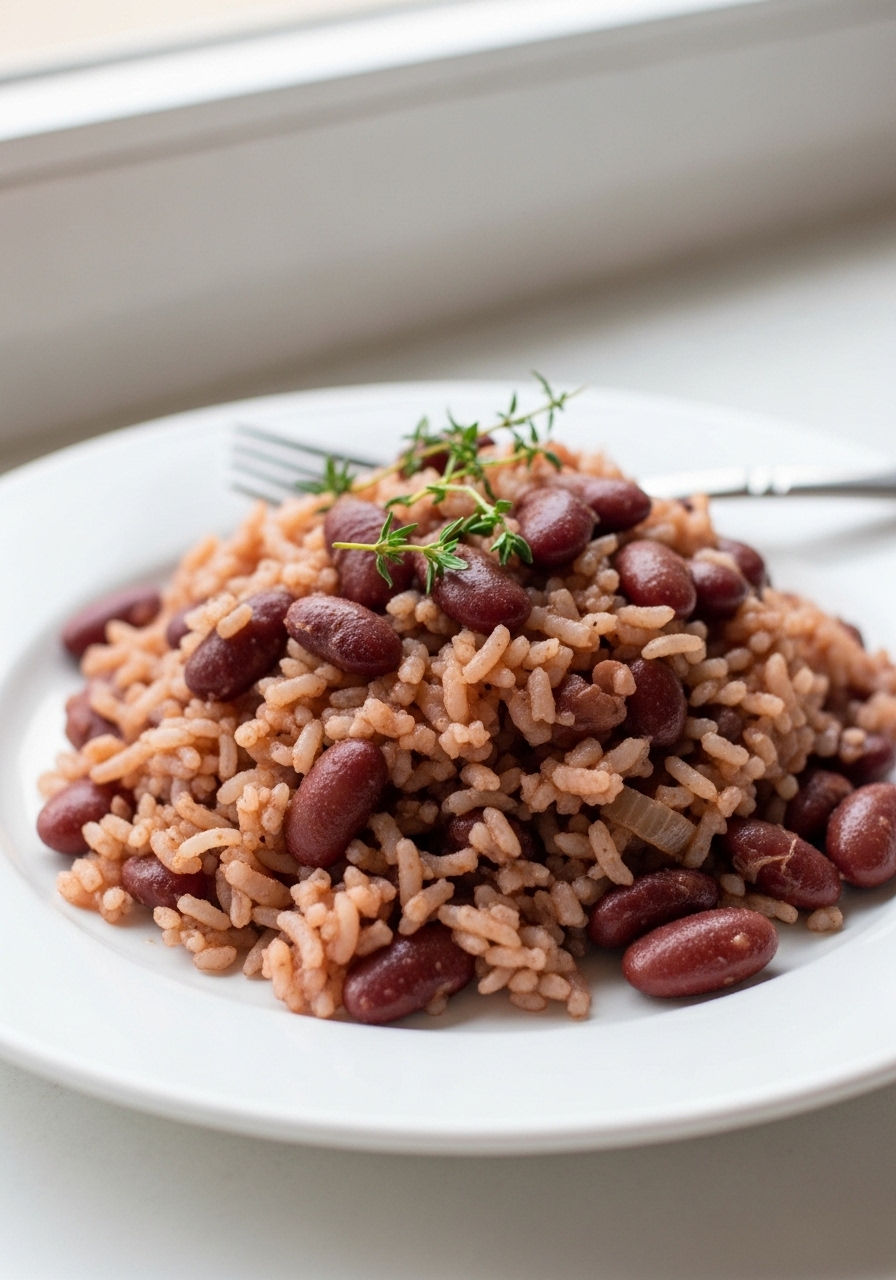 "Experience the vibrant flavors of Jamaica with this Red Beans and Rice recipe, enriched with creamy coconut milk, aromatic thyme, fresh scallions, and a kick of scotch bonnet peppers. This dish is sure to transport your taste buds to a tropical paradise!"