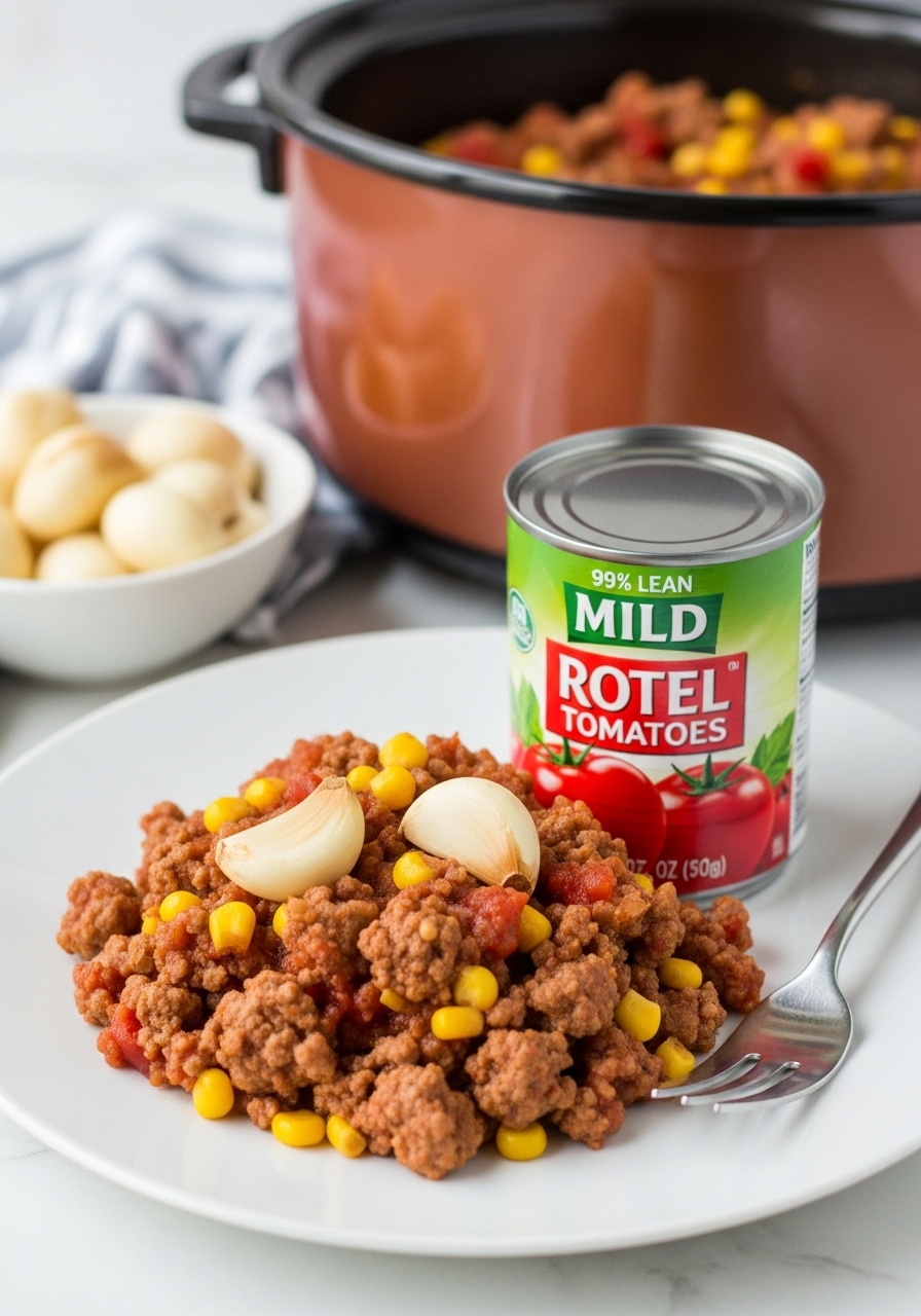 Transfer the sautéed mixture over the turkey in the slow cooker, then incorporate corn, diced tomatoes, tomato sauce, cumin, chili powder, paprika, and additional salt. Stir until everything is thoroughly combined.