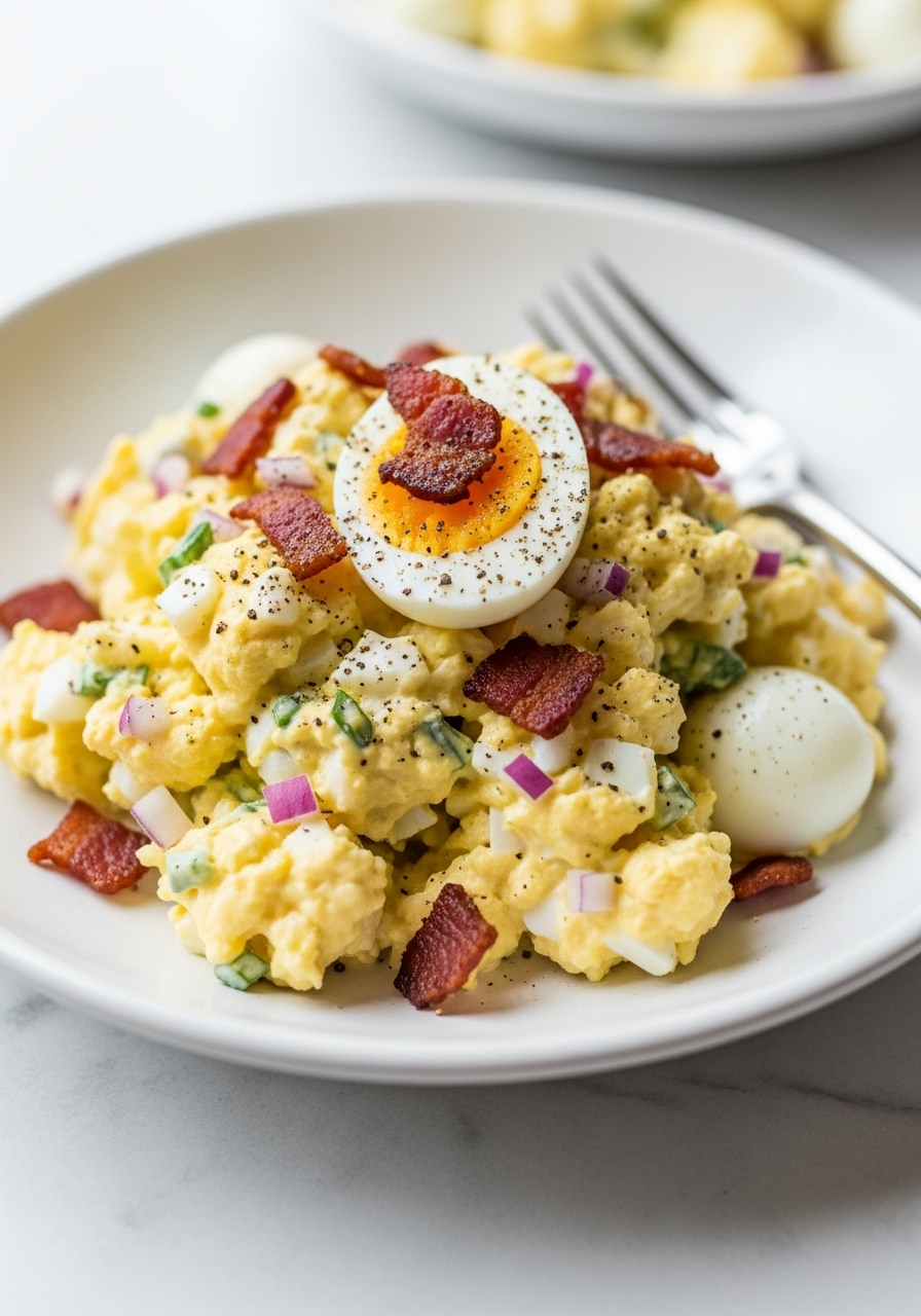 "Effortless Deviled Egg Salad transforms a beloved snack into a speedy midday meal! This dish features all the traditional elements without the hassle of piping or elaborate filling."
