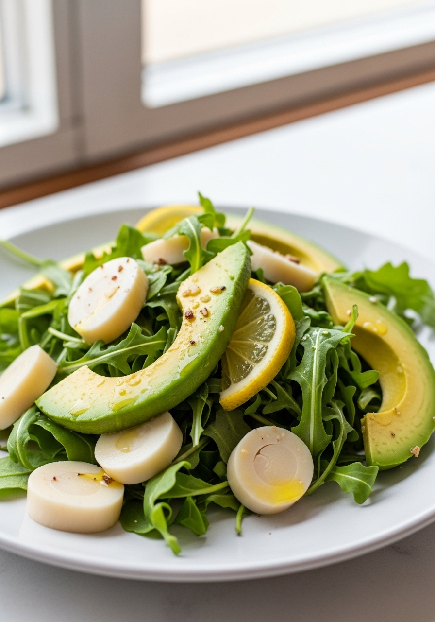 This refreshing Hearts of Palm and Avocado Salad, brightened with a zesty lemon dressing, makes for a quick and simple side dish. You can easily enhance it into a satisfying main course by adding your preferred protein.