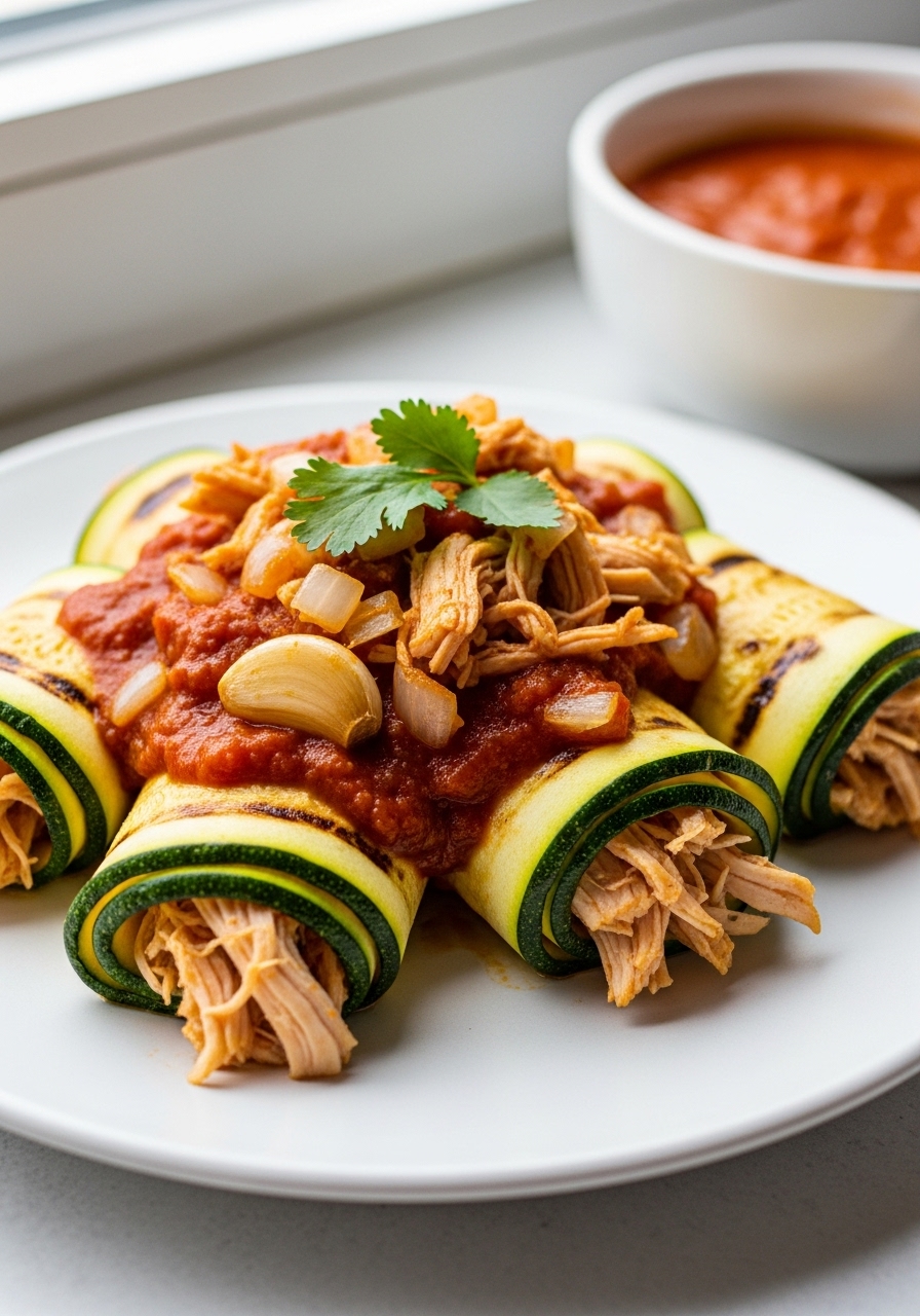 These delectable Zucchini Enchilada Roll Ups are stuffed with flavorful shredded chicken, then drizzled with rich enchilada sauce and a layer of melted cheese. They make a scrumptious option for those following keto, gluten-free, or low-carb lifestyles.