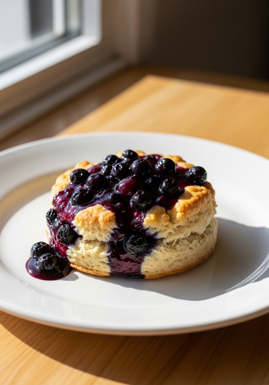 Freshly baked, healthier blueberry scones straight from the oven create an ideal Sunday morning treat, perfectly complemented by a steaming cup of tea.