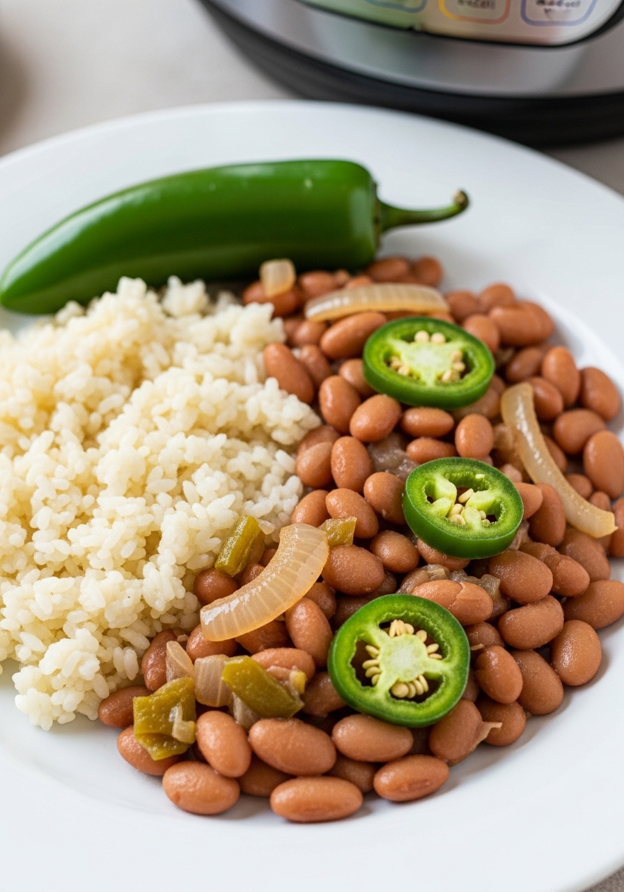 Allow for a natural pressure release. Once done, remove the bay leaves, the half onion, and the jalapeño. Stir in the sautéed onion mixture and season with salt to taste.