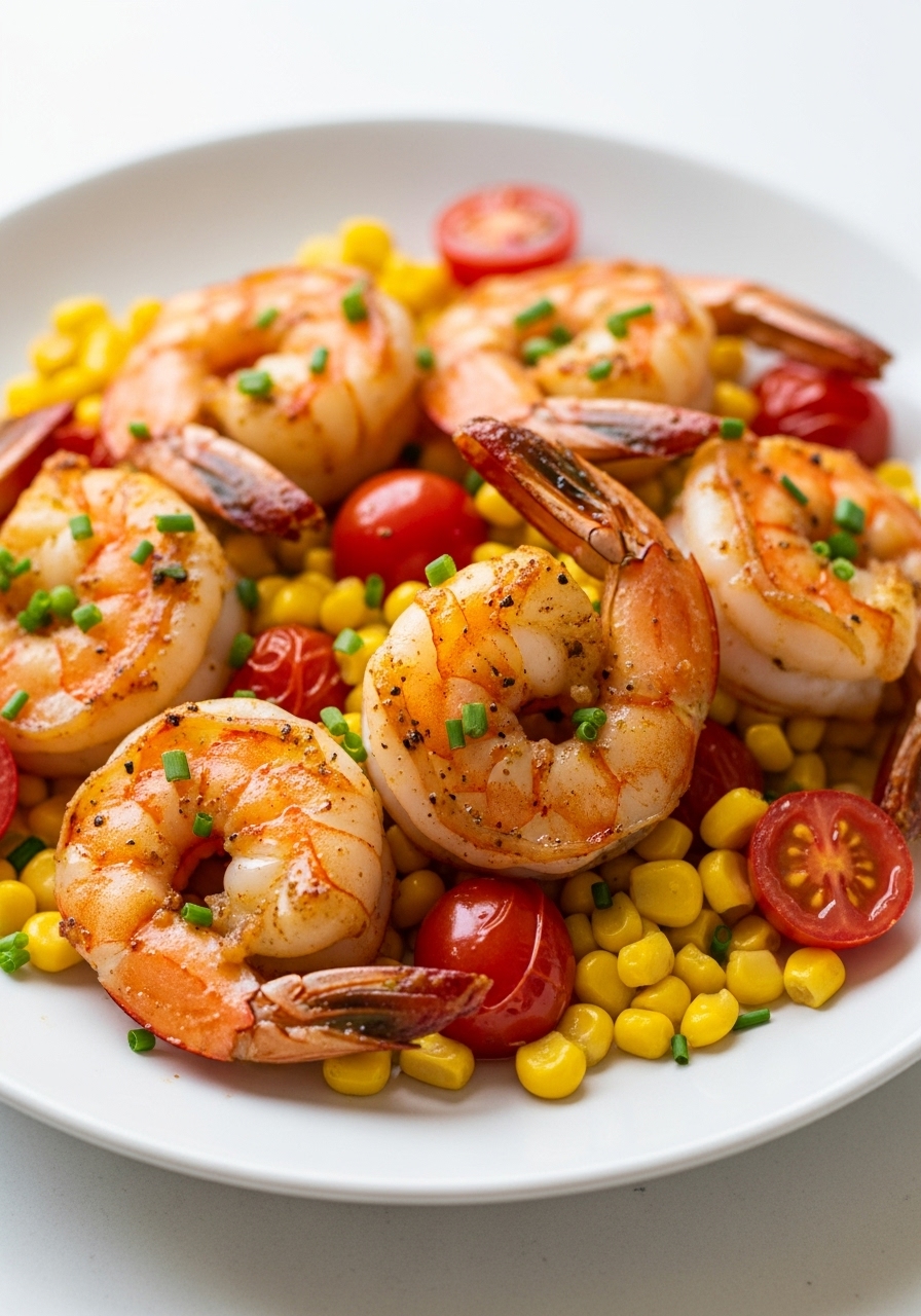Layer the shrimp over the charred corn, then scatter the tomatoes on top. Drizzle with the remaining 1 tablespoon of olive oil and broil until the shrimp turn opaque and the tomatoes begin to burst, which will take around 7 to 8 minutes.