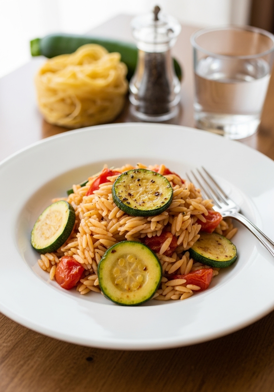 "Orzo with Zucchini and Tomato is a simple yet delightful side that pairs wonderfully with chicken or pork chops. For a heartier meal, simply double the ingredients and savor it as a satisfying main course."