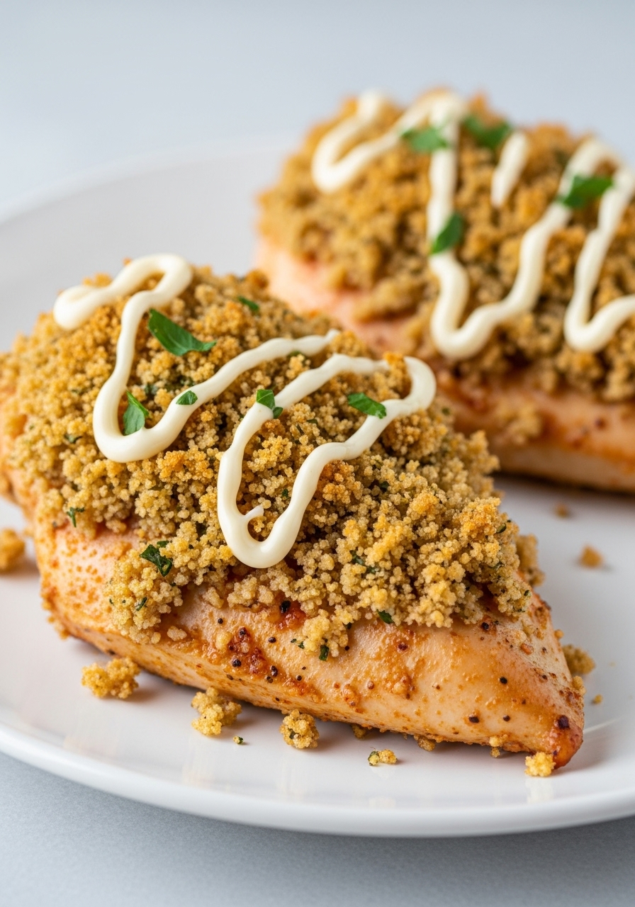 "Deliciously tender Oven Baked Chicken Breast, adorned with a crunchy layer of panko and Parmesan crumbs – a mouthwatering delight!"