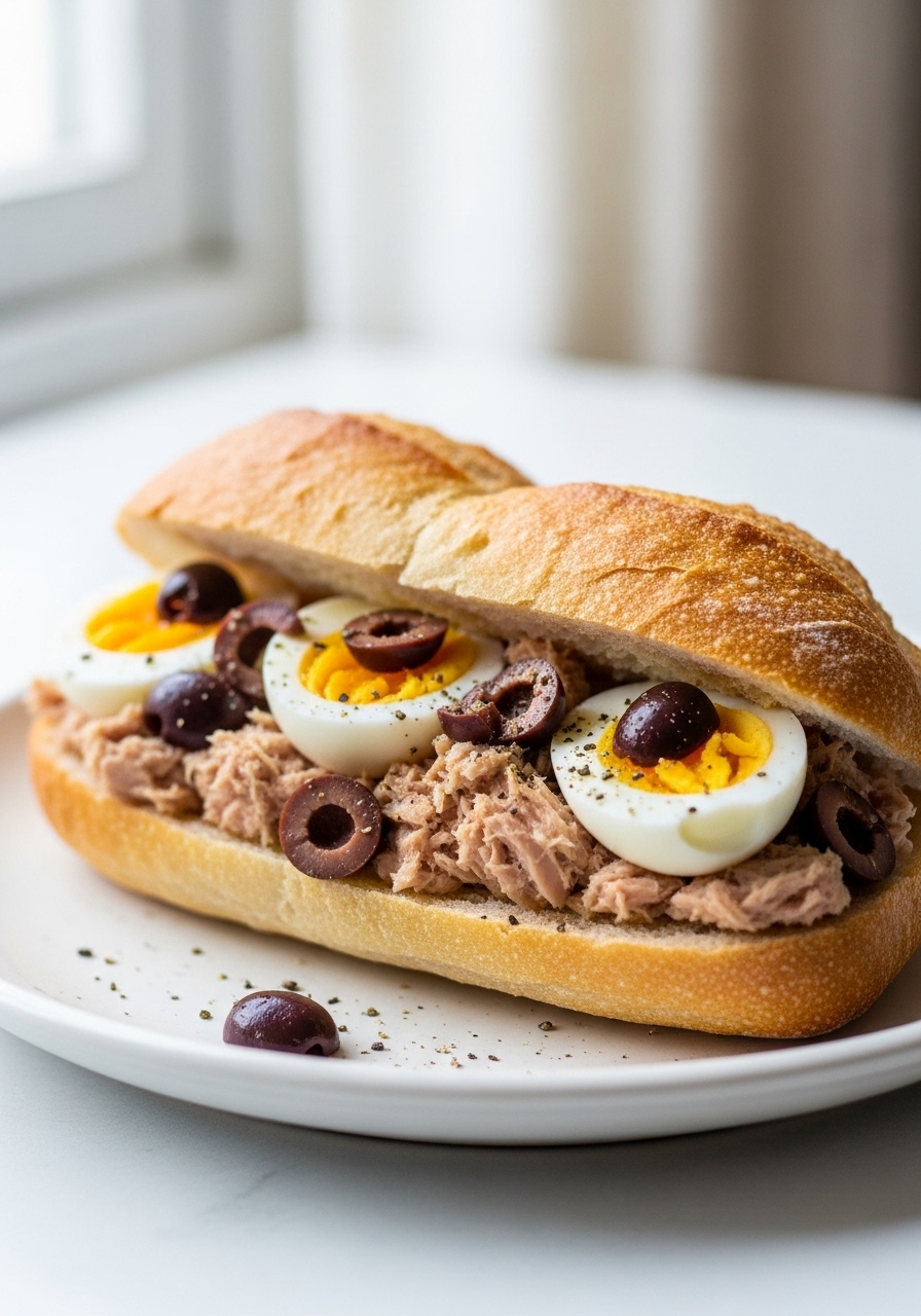 The Pan Bagnat is a hearty sandwich hailing from Nice, France, brimming with protein. Think of it as a portable version of a Salade Niçoise, making it an ideal choice for picnics or a convenient lunch that you can prepare in advance!