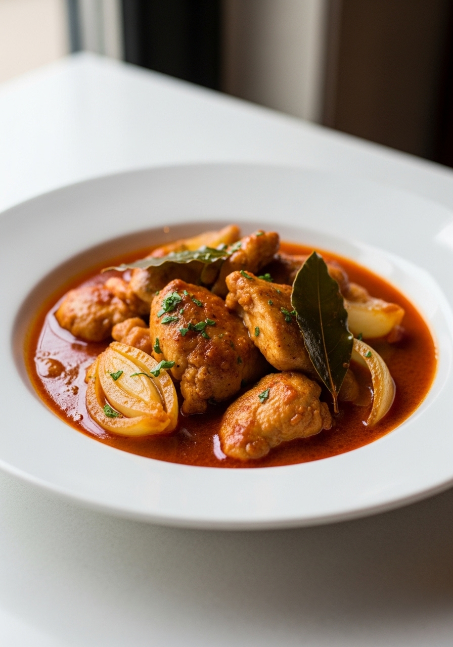 "Paprika Chicken Stew is a simple and satisfying meal perfect for a busy evening, featuring tender chicken on the bone, vibrant bell peppers, and a generous amount of flavorful Hungarian paprika."