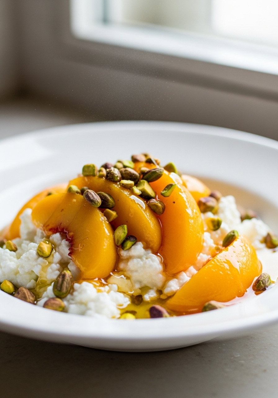 "Indulge in Peach Pie Cottage Cheese Bowls, a delightful and protein-packed morning treat featuring juicy, sun-kissed peaches. Perfect for a refreshing start to your day!"