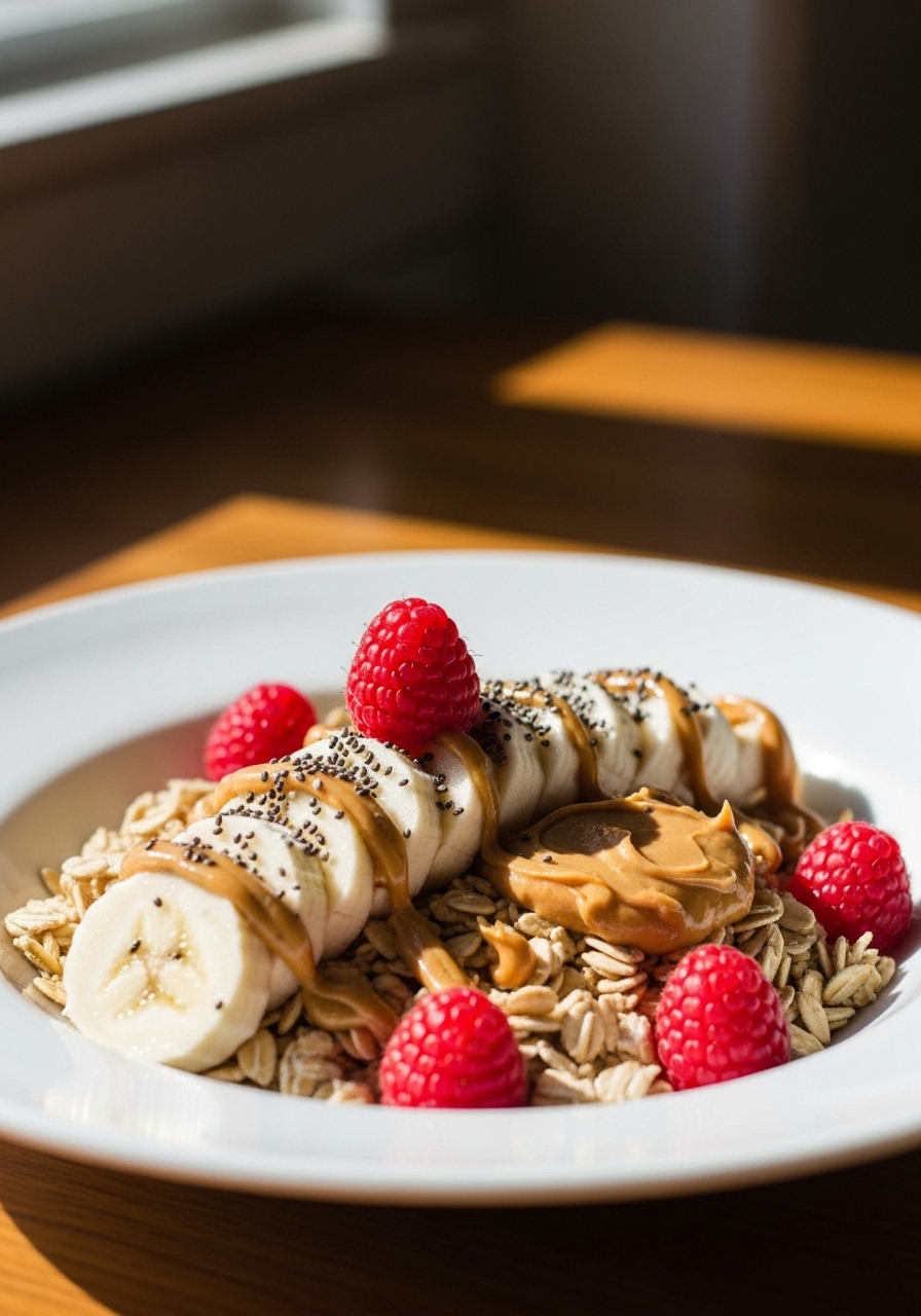 The Peanut Butter Breakfast Oatmeal Bowl is a nutritious morning meal brimming with fiber and protein, naturally sweetened by the goodness of fresh fruit.