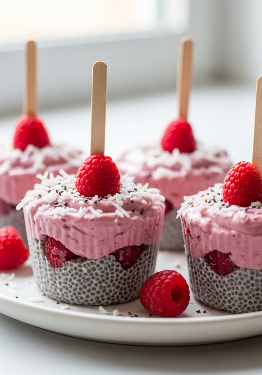 These delightful Raspberry Coconut Chia Pudding Popsicles make for a refreshing and nutritious treat, ideal for indulging on a warm summer afternoon or as a wholesome dessert.