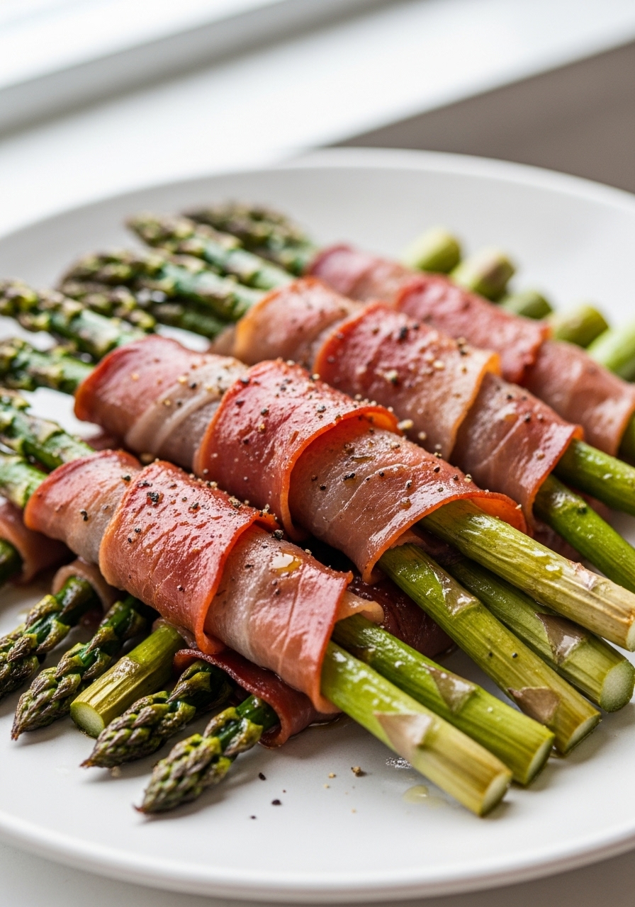 "Spring is truly celebrated with the delightful flavor of asparagus! These bundles of asparagus, elegantly wrapped in prosciutto and roasted to perfection, make for an effortlessly sophisticated side dish—ideal for your Easter table." Recipe title: "Roasted Prosciutto Wrapped Asparagus Bundles"