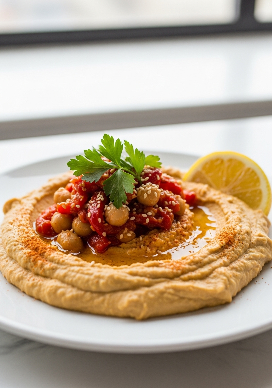 The addition of smoky bell peppers brings a burst of flavor to this delightful roasted red pepper hummus! Enjoy it alongside your favorite fresh vegetables for a nutritious and satisfying snack.