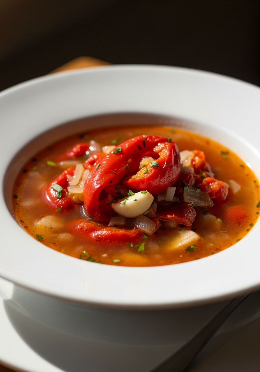 This Roasted Red Pepper Soup is a delightful vegetarian option that combines a harmonious mix of sweetness, smokiness, and comforting warmth, making it an ideal dish to enjoy.