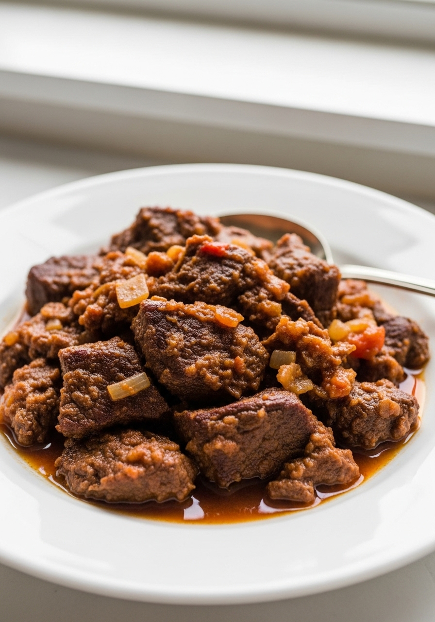 Ropa Vieja is a traditional Cuban delicacy featuring tender, shredded beef that has been simmered to perfection alongside a medley of onions, bell peppers, olives, and a rich tomato sauce, all enhanced with aromatic spices such as cumin and oregano.