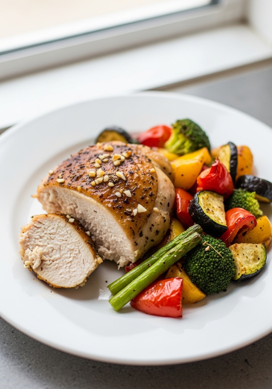 Arrange the vegetable mixture on the sheet pan. Place the marinated chicken among the vegetables and roast on the lower rack of the oven until everything is tender, about 20 minutes, or until the chicken is fully cooked.