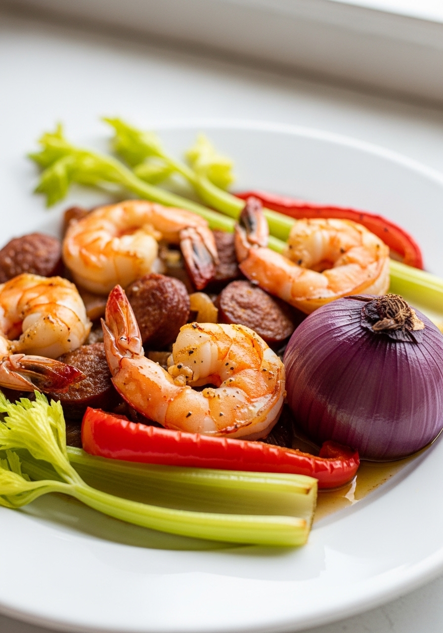 Delight in a Shrimp & Andouille Sheet Pan Roast that brings together succulent shrimp and zesty Andouille sausage, accompanied by vibrant broccoli, earthy mushrooms, crunchy bell pepper, sweet onion, and crisp celery. This dish is infused with a medley of Cajun spices, creating a flavorful and effortless meal that’s perfect for any night of the week.