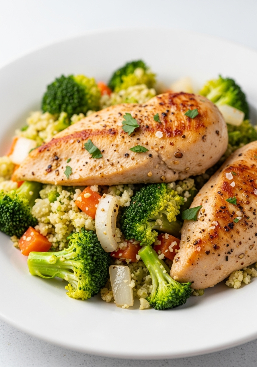 Whip up this Skillet Cheesy Chicken and Veggie "Rice," featuring a delightful blend of riced broccoli and cauliflower, tender sautéed chicken, and gooey cheddar cheese. It’s a quick and effortless dish that comes together in no time!