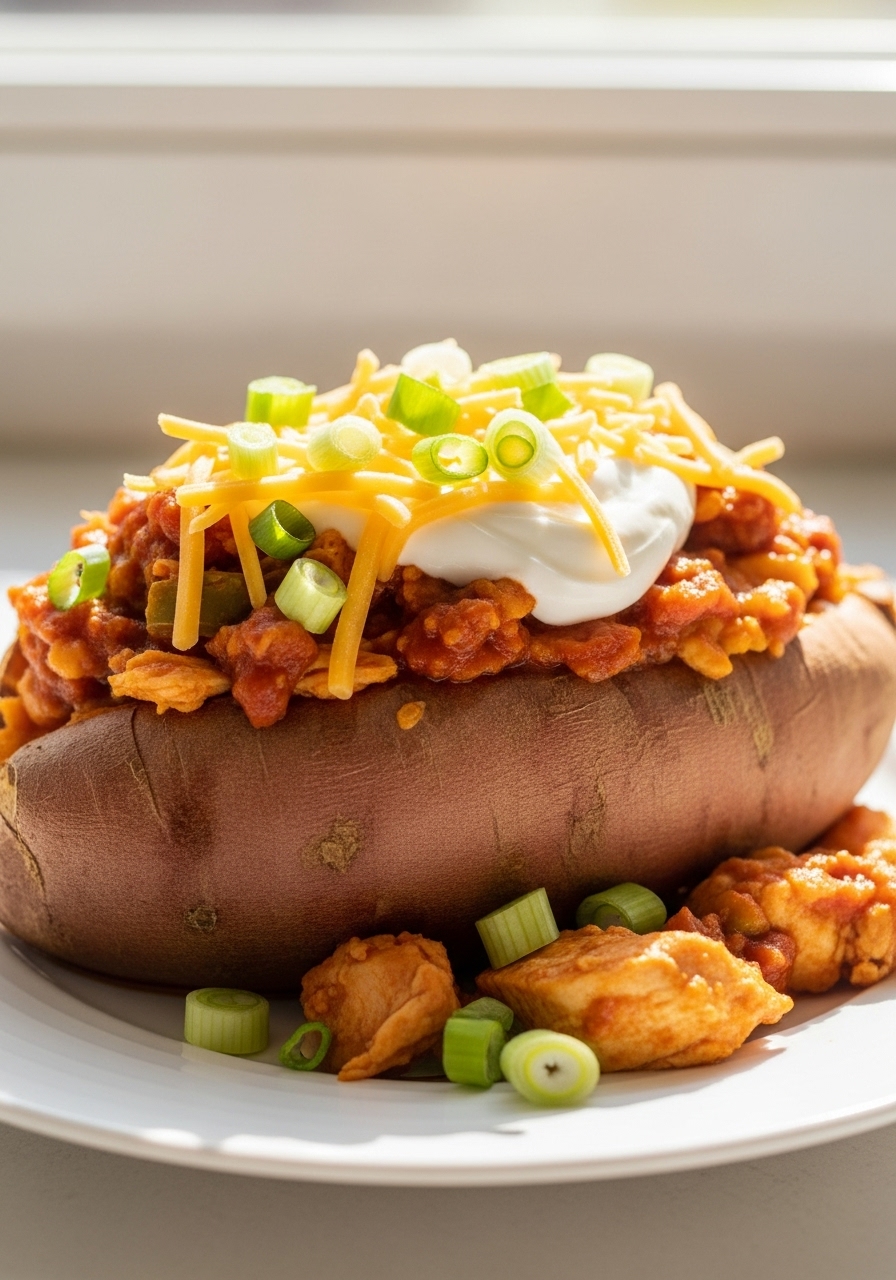 Indulge in these Slow Cooker Loaded Enchilada Chicken Stuffed Sweet Potatoes, featuring tender chicken breast, melty cheese, and zesty enchilada sauce. This delightful dish is a simple, all-in-one meal that brings convenience and flavor to your table!