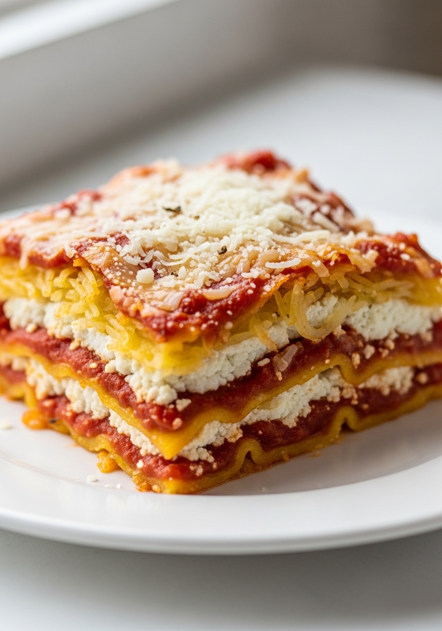 "Delicate strands of roasted spaghetti squash are generously combined with marinara sauce, creamy mozzarella, and velvety ricotta cheese. This delightful mixture is then baked to perfection, allowing the cheese to melt and the harmonious flavors to meld beautifully."