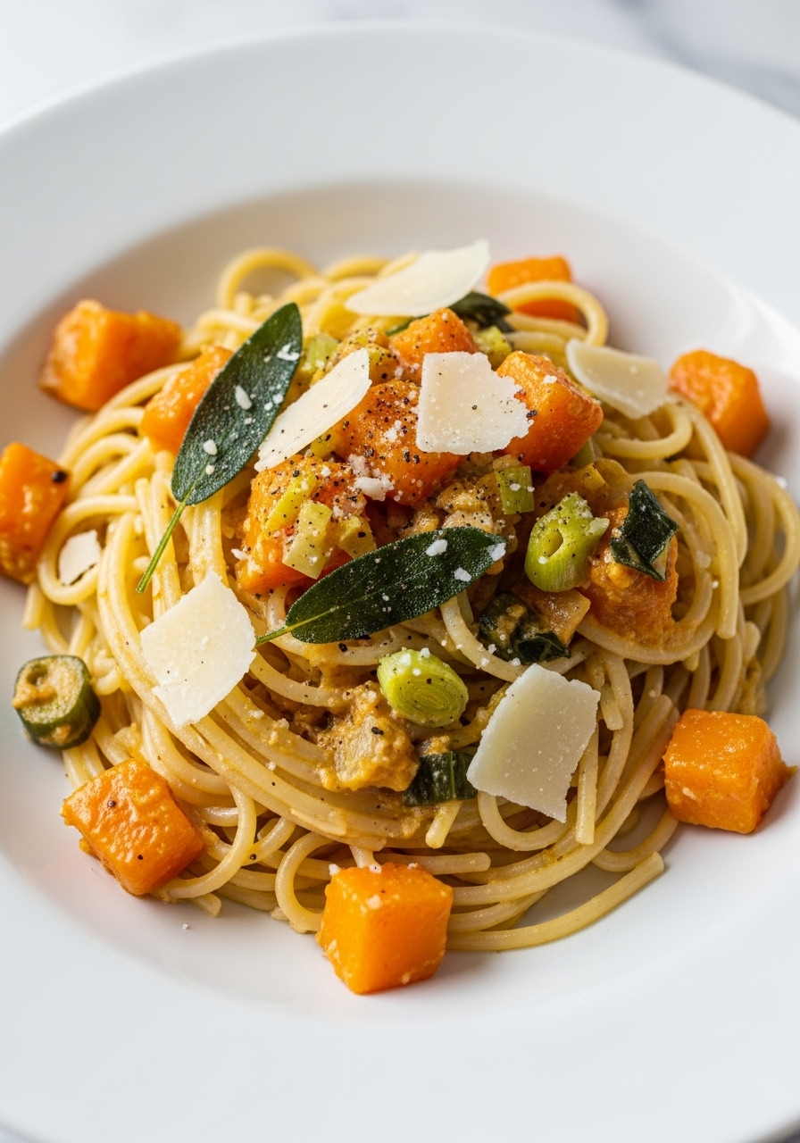 When you marry spaghetti with a luscious butternut squash sauce infused with leeks, sage, garlic, and Parmigiano Reggiano, culinary magic unfolds. The result is so rich and satisfying that you'll be convinced it’s laden with cream and butter, yet rest assured, it’s entirely guilt-free!