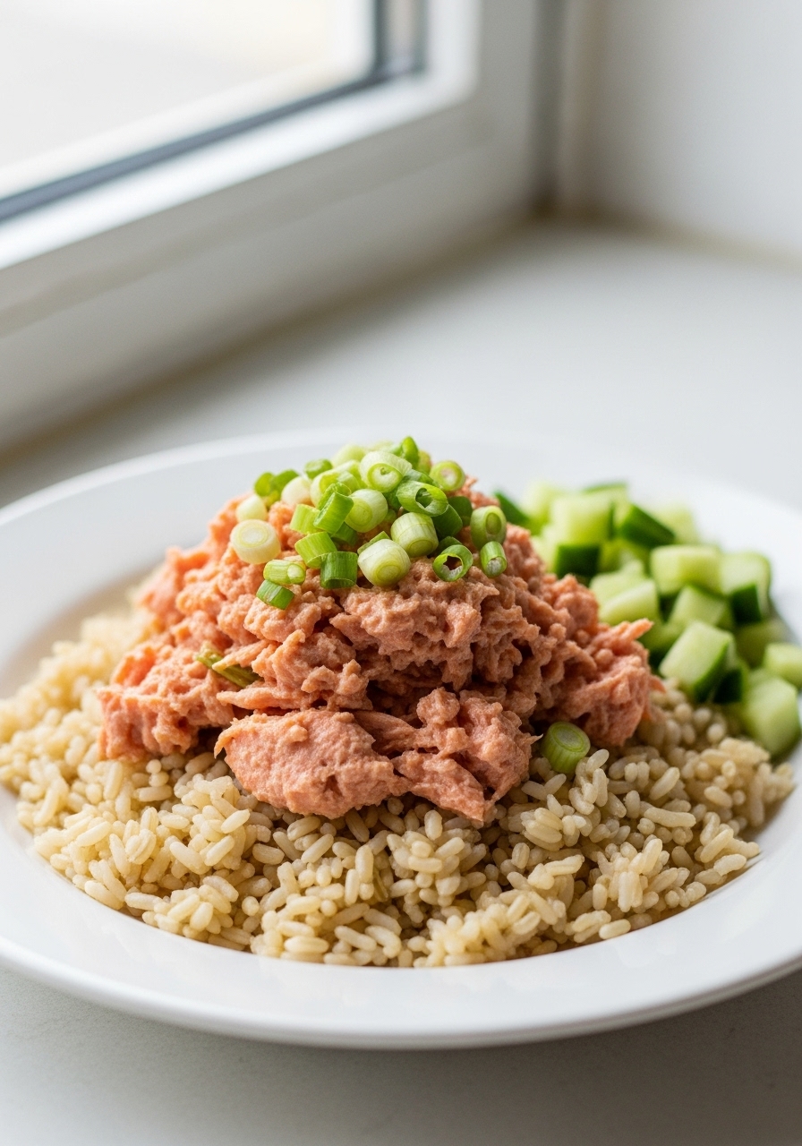 "This simple and speedy Spicy Canned Salmon Salad Rice Bowl is an excellent choice for a nutritious, wallet-friendly lunch packed with protein!"