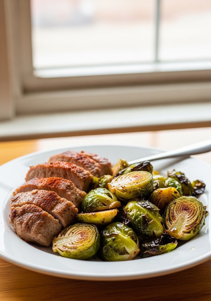 "Spicy Pork Brussels Bowls offer a delightful low-carb dining experience, featuring a foundation of shredded Brussels sprouts, savory ground pork with a hint of smokiness, and a perfectly cooked egg crowning the dish!"