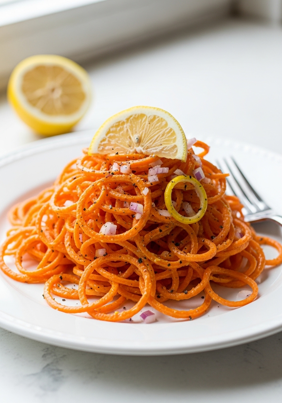 This simple carrot salad features just five ingredients and bursts with zesty lemon flavor! There's no need for a spiralizer; you can easily use pre-shredded carrots or transform whole carrots into delightful ribbons with a potato peeler. Enjoy a fresh and tasty side dish that’s both vibrant and satisfying!