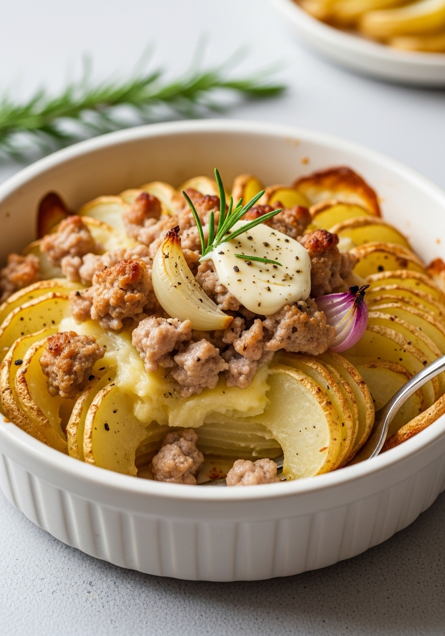 Thinly spiralized turnips, carrots, and potatoes meld beautifully with tender turkey, all enveloped in a delicate cream sauce and crowned with a sprinkle of grated Gruyere cheese. This delightful casserole is a perfect addition to your festive holiday spread.