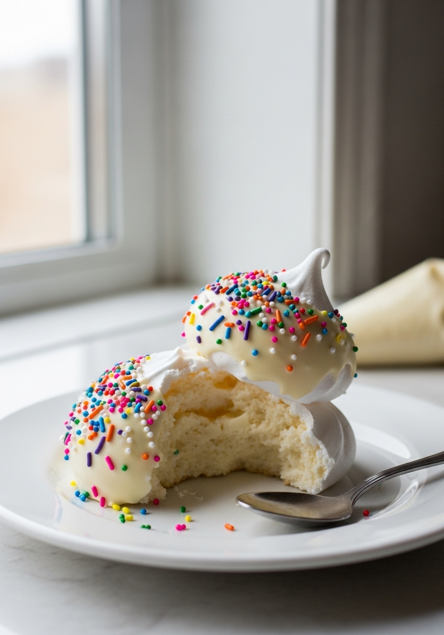 "Light and airy meringues that dissolve effortlessly on your tongue, coated in luscious white chocolate and adorned with colorful sprinkles—could there be anything more delightful?"