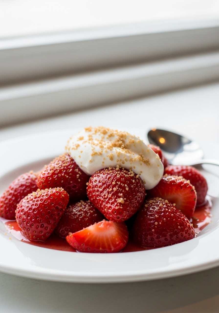 "Strawberries Romanoff – an effortless and delightful dessert made with just three ingredients, ideal for any evening indulgence!"