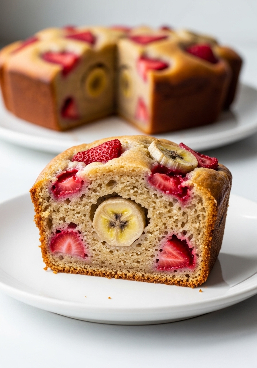 Indulge in the delightful flavors of Roasted Strawberry Banana Bread, a wonderfully moist treat crafted from perfectly ripe bananas and luscious roasted strawberries. The roasting process enhances the natural sweetness of the strawberries, resulting in a delectable loaf that's sure to please your taste buds.