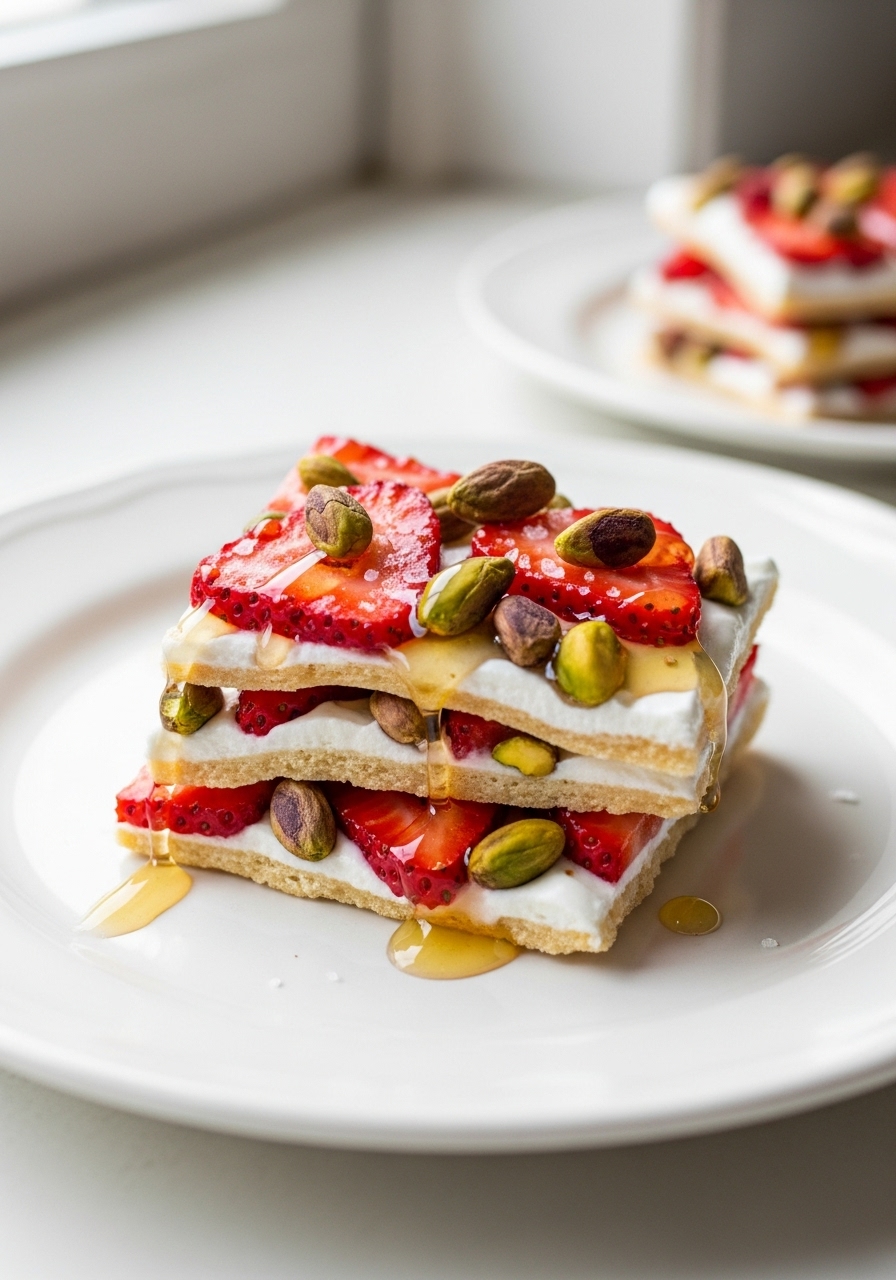Scatter the remaining strawberries and nuts on top of the yogurt layer.
