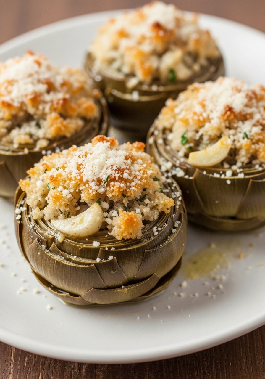 Stuffed artichokes are a beloved Italian specialty featuring a delightful mix of crunchy, cheesy breadcrumbs. In my rendition, I've trimmed down the richness while ensuring it remains equally scrumptious!