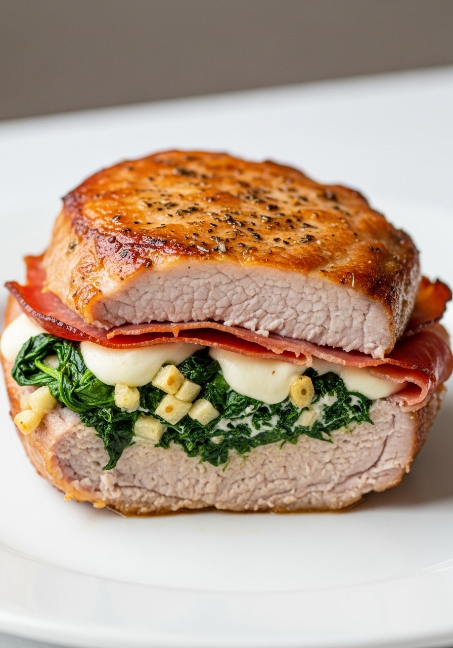 These delectable stuffed pork chops are absolutely delightful, inspired by a dish I enjoyed at a charming Italian eatery. Each chop is filled with a savory blend of prosciutto, creamy mozzarella, and tender baby spinach, then finished off with a crispy garlic and breadcrumb topping.