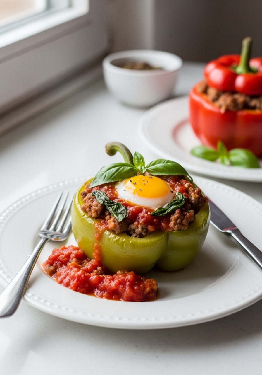 Spoon 1 cup of the beef and rice mixture into each bell pepper, then place the stuffed peppers into the prepared sauce. Pour a little of the sauce over the top of each pepper.