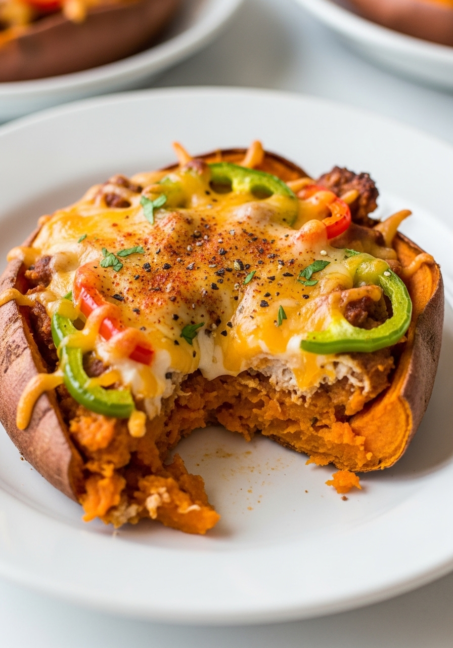 These baked sweet potato wedges, inspired by Irish cuisine, are generously adorned with my go-to nacho toppings, making them irresistibly delicious!