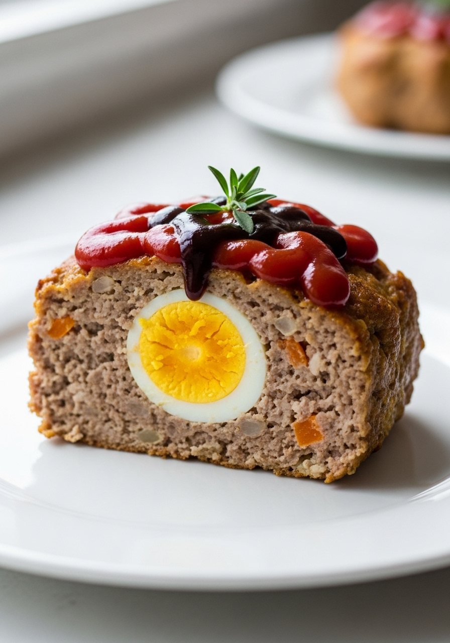 Transfer the mixture into a loaf pan or mold it into a loaf shape and place it on a baking sheet. Drizzle the sauce over the top.