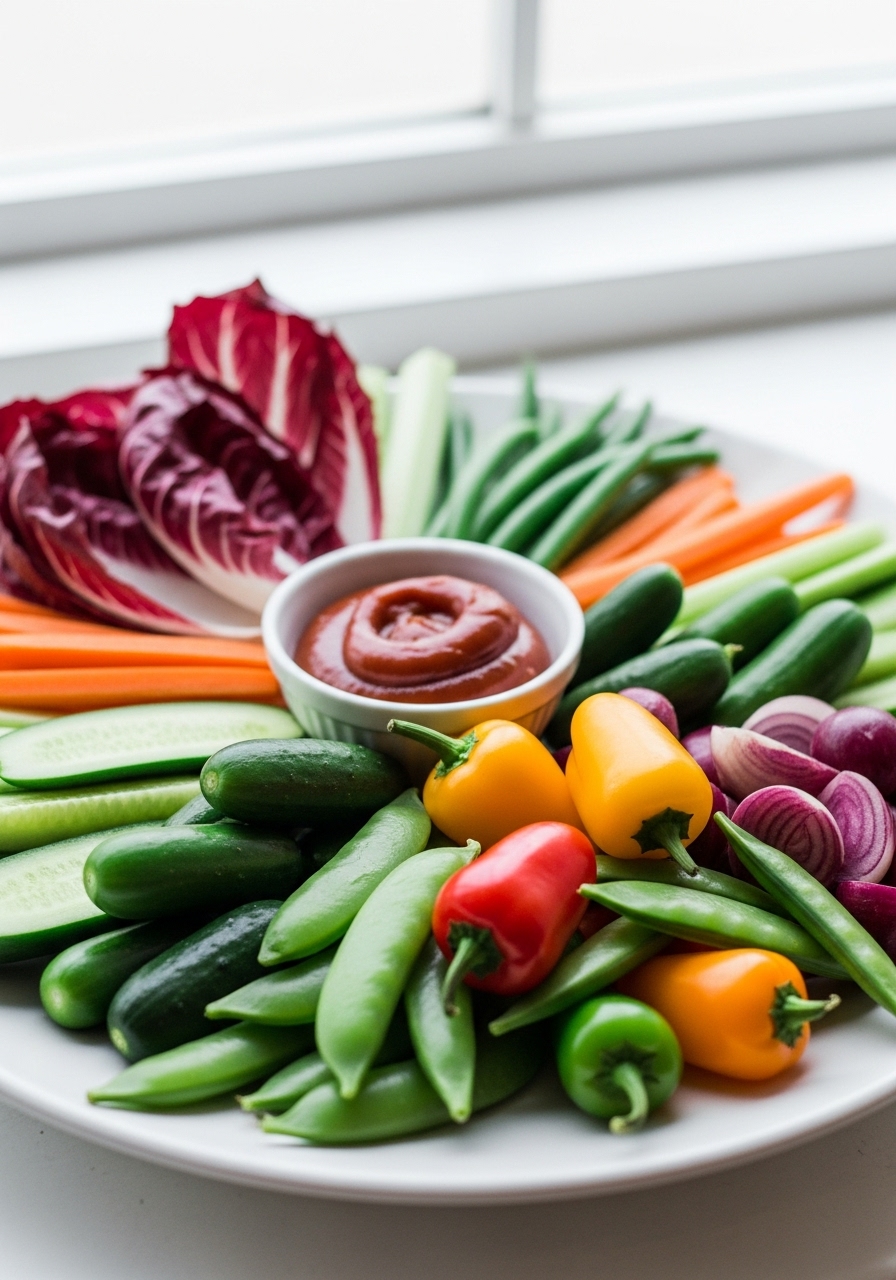 This contemporary version of the classic vegetable platter elevates the traditional dish with a vibrant presentation. Think of it as a veggie charcuterie board, complete with an array of dips and delightful extras!