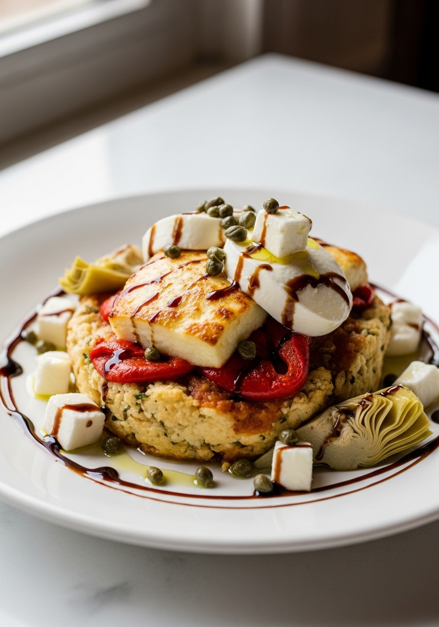 Introduce the diced red onion to the skillet and sauté until it becomes tender, approximately 2 to 3 minutes. Next, incorporate the artichoke hearts, roasted peppers, and capers. Drizzle balsamic vinegar over the mixture and stir well, allowing it to cook until warmed through, about 1 minute.
