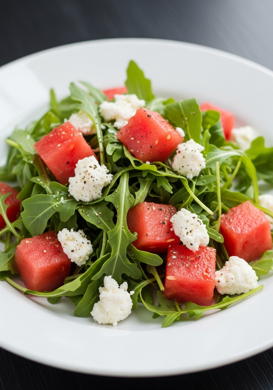 "Watermelon, Arugula, and Feta Salad is a delightful and refreshing dish perfect for summer, making it an excellent accompaniment to your grilling favorites!"