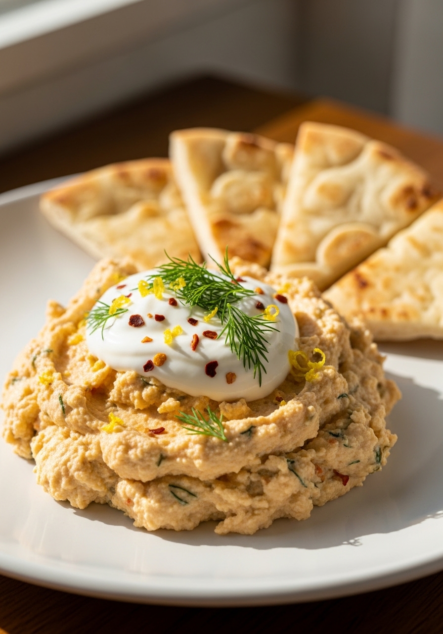 When ready to serve, drizzle with a bit more olive oil, add a dash of red pepper flakes, sprinkle the reserved lemon zest, and finish with fresh dill.